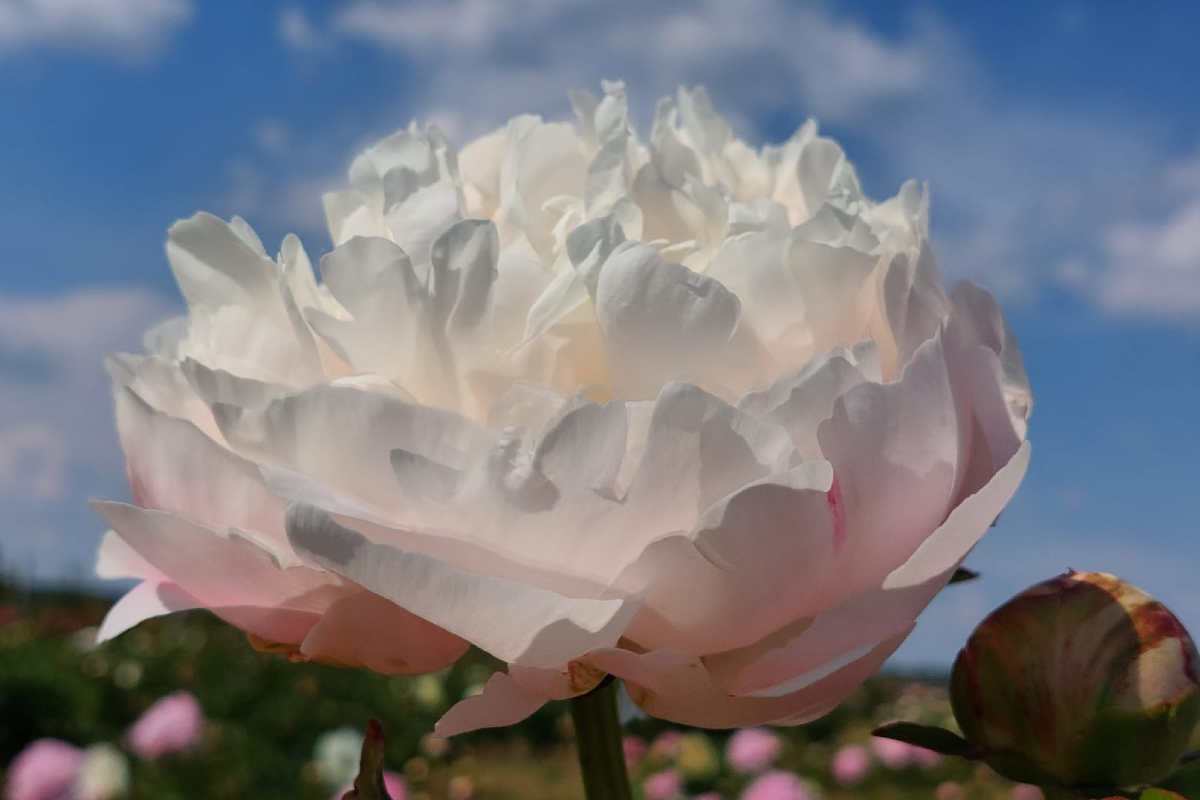 Odkryjcie uroczą piwonię CORINNE WERSAN! Ta śliczna odmiana ma piękne, pełne kwiaty w kolorze od delikatnego różu do czystej bieli. Wyobraźcie sobie te duże, puszyste kwiaty, które zdobią Wasz ogród!