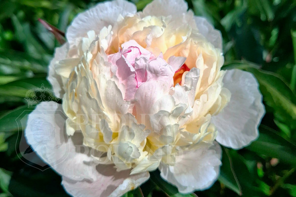 Mistrzowska forma kwiatu: Jest to piwonia o pełnych, podwójnych kwiatach. Gładkie, szerokie płatki zewnętrzne stanowią ramę dla misternie ułożonego, „zakrzywionego” środka, który z czasem tworzy wyniosłą koronę.